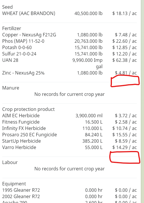 Would give an idea of average input costs in their respective categories for each crop type. Helps when making projections for subsequent years.