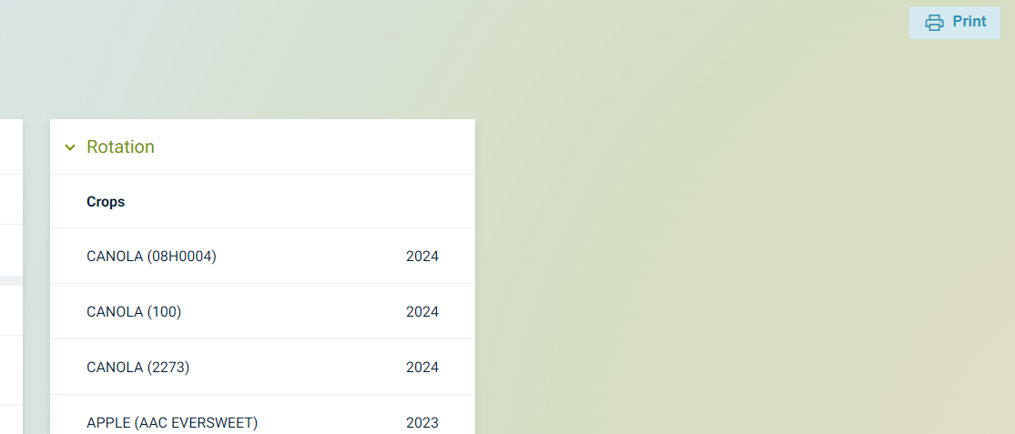 Can we get a report of the crop rotation for an overview of the whole farm with every field's rotation?