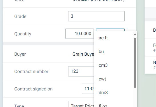 Hi, yes I know if we switch the contract the deliveries switch accordingly with it. However, we sometimes have contracts in metric tonnes and the deliveries are in bushels or lbs. It's not always the same unit of measurement accross.