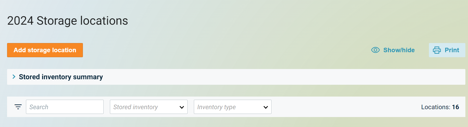 Carol wants to be able to print out a list of storage locations with crop and inventory level so she can send her team out to verify those bins.
