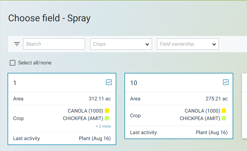 Hi! You can add any activity (other than Harvest and Soil) test to multiple fields. Here is an example of adding a spray activity to multiple fields.