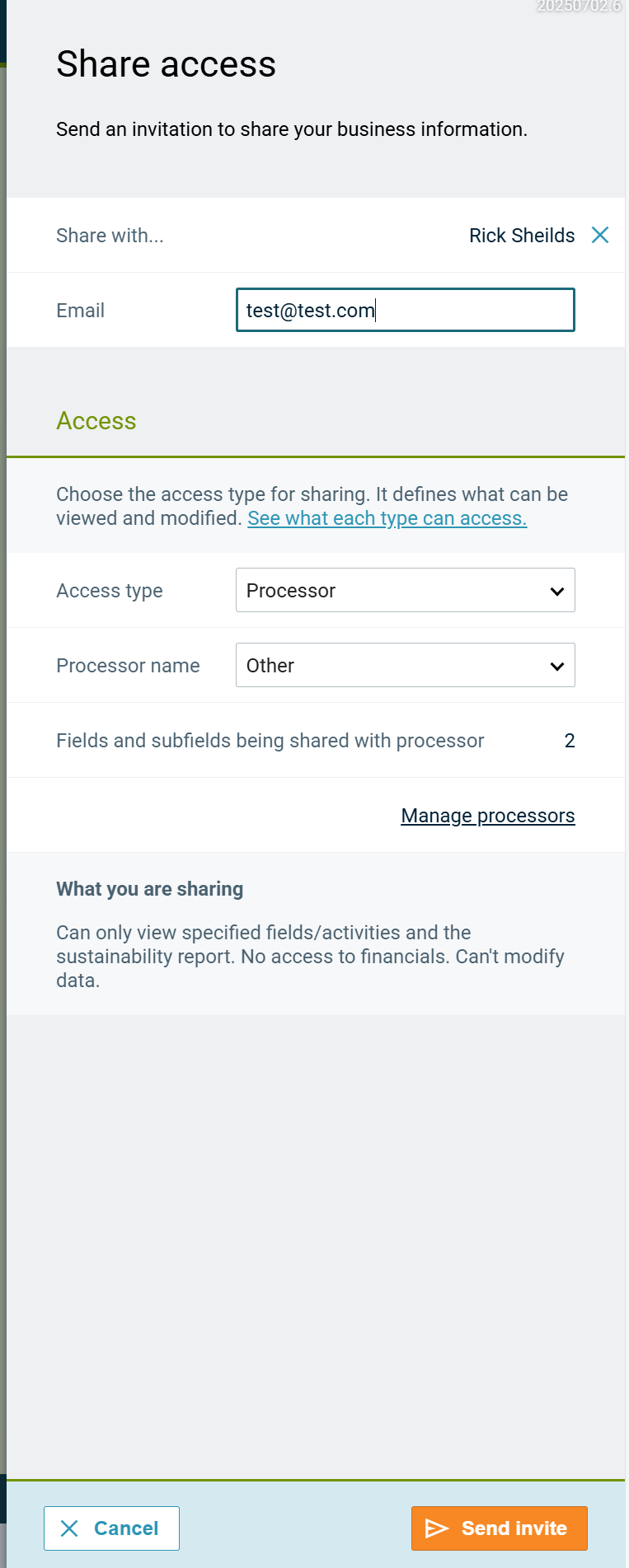 If you add the email address you want to share specific fields to, go to More > Sharing > Share as a processor