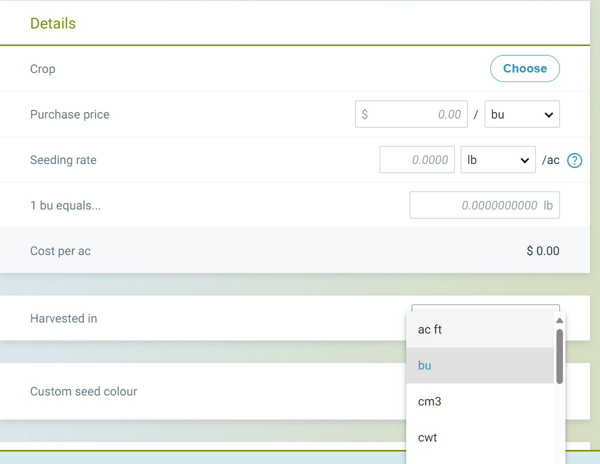Hi, you can set a harvested unit when setting up the seed. You can also select Triticale in varieties. Thanks!